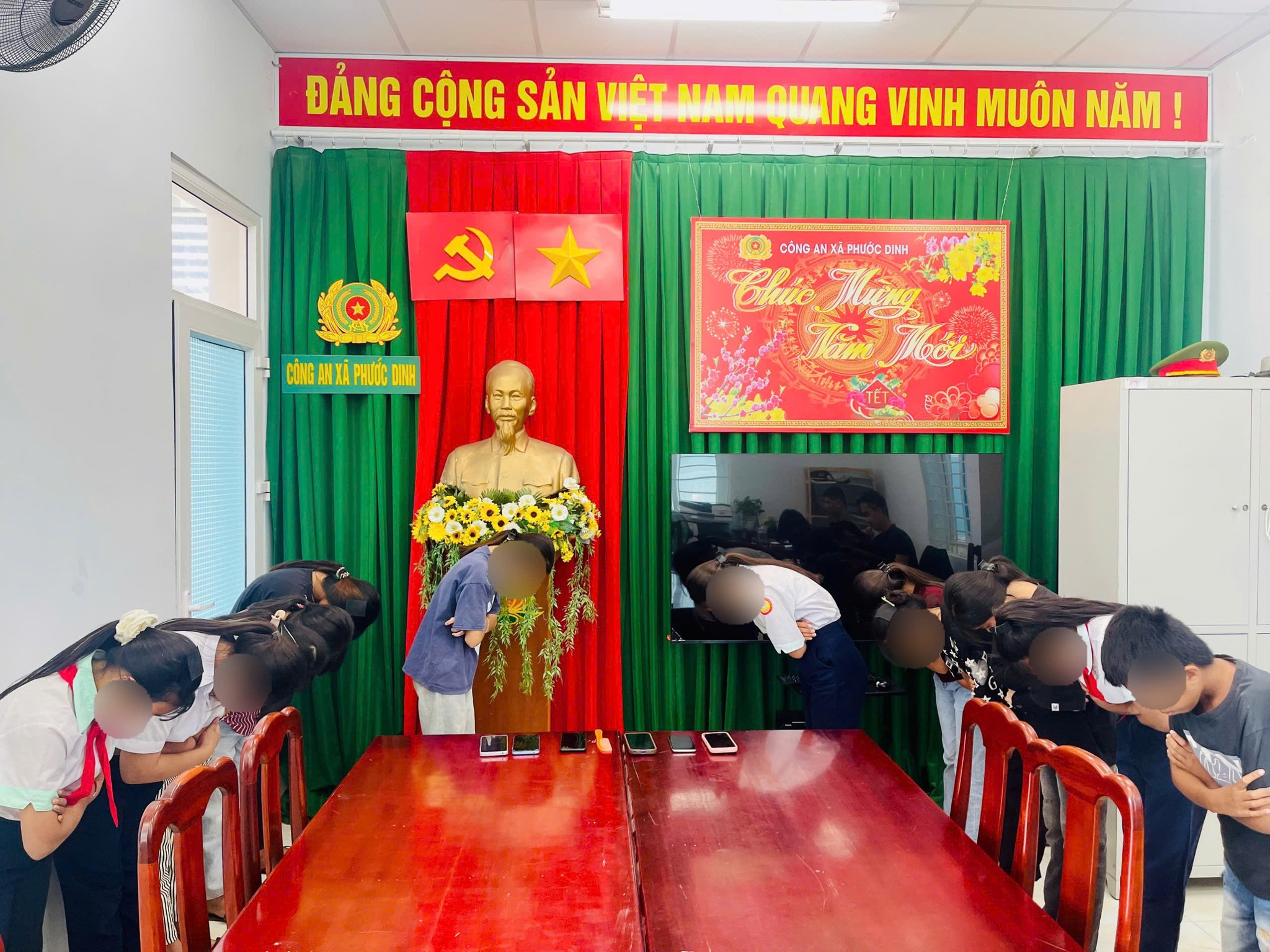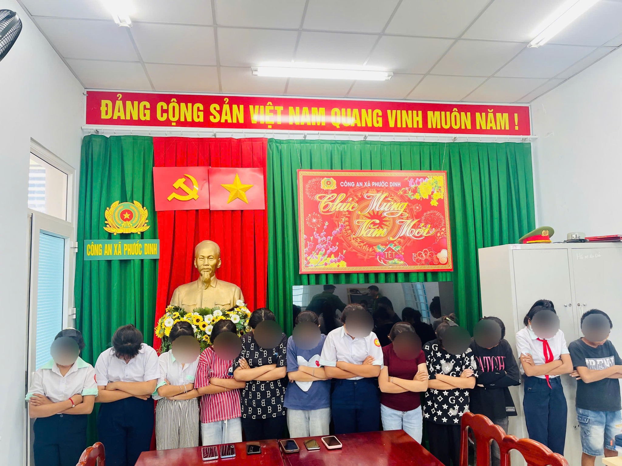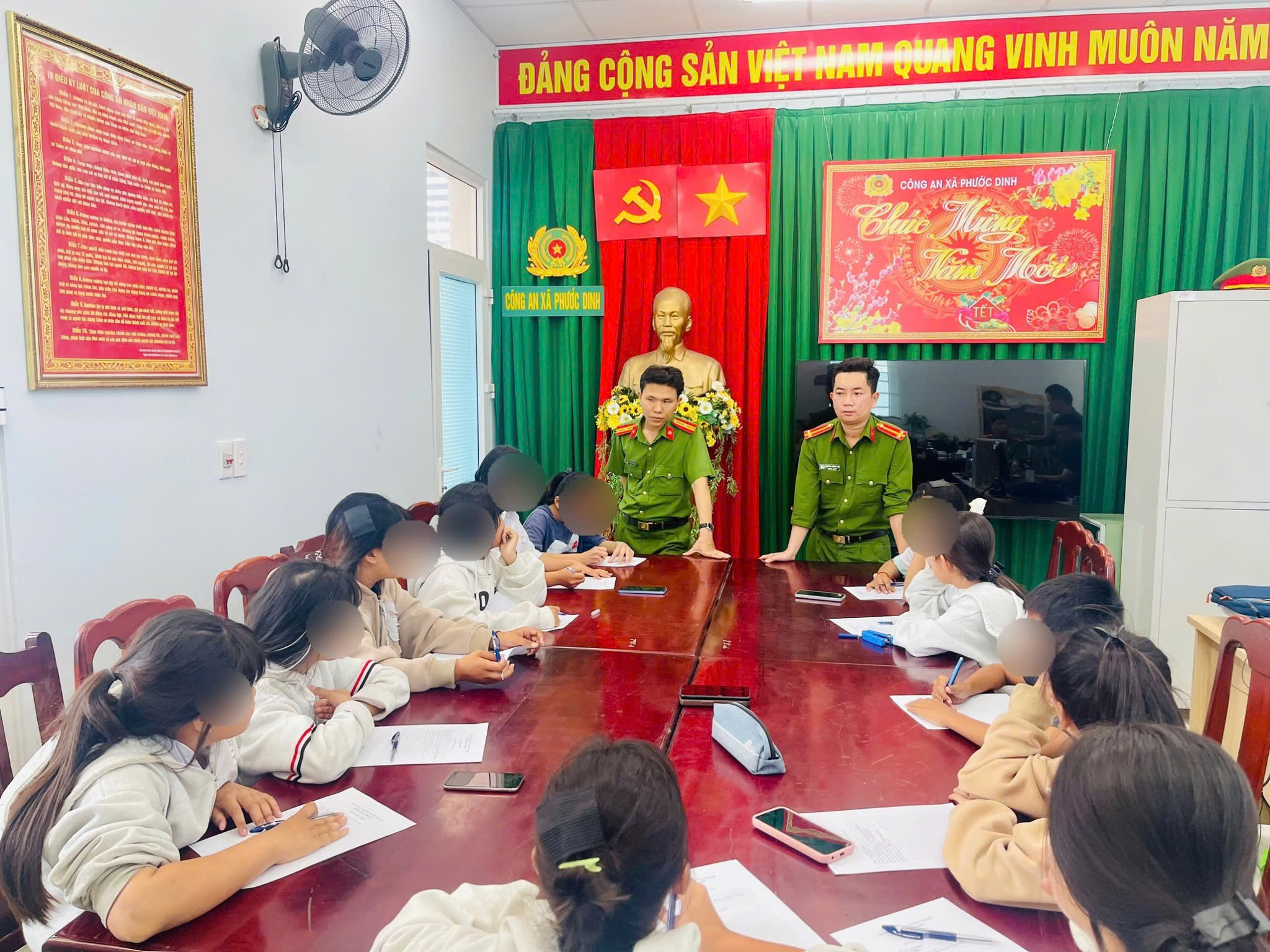 Vụ việc diễn ra trong thời gian ngắn thì lực lượng công an địa phương vào cuộc, kịp thời ngăn chặn. Tại trụ sở Công an xã Phước Dinh, các em được nhắc nhở, giáo dục về hành vi vi phạm.