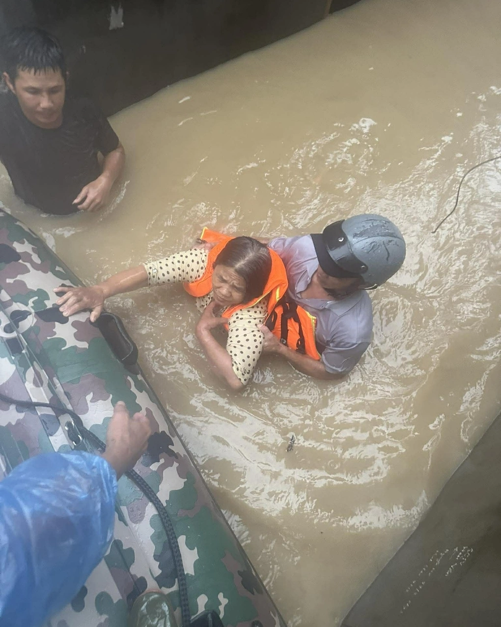 Bà Phan Thị Mỹ Linh, sống ở thôn Phú Phong – vùng cô lập nặng nhất, cho biết ba ngày qua nhiều hộ phải tránh lũ ở tầng hai, thiếu nước uống và thức ăn, chỉ mong được đưa ra ngoài sớm. Người già, phụ nữ và trẻ em được ưu tiên sơ tán trước.