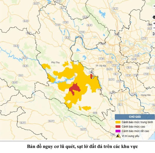 6 giờ tới, có nguy cơ xảy ra lũ quét, sạt lở đất, sụt lún đất trên sườn dốc, suối nhỏ tại:
