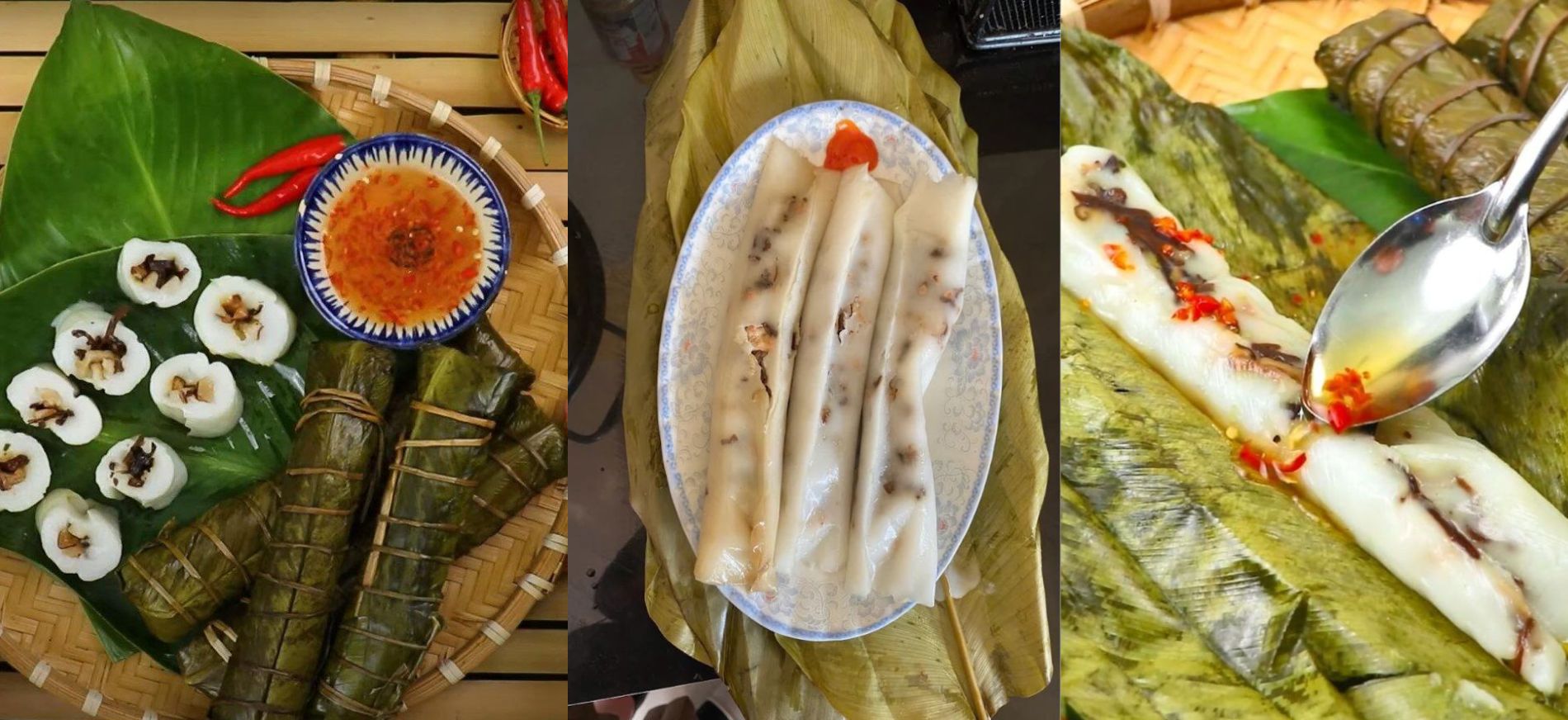 Bánh mang vị dẻo thơm của bột gạo, béo ngậy của thịt hòa quyện cùng mộc nhĩ giòn dai và hương lá dong đặc trưng.