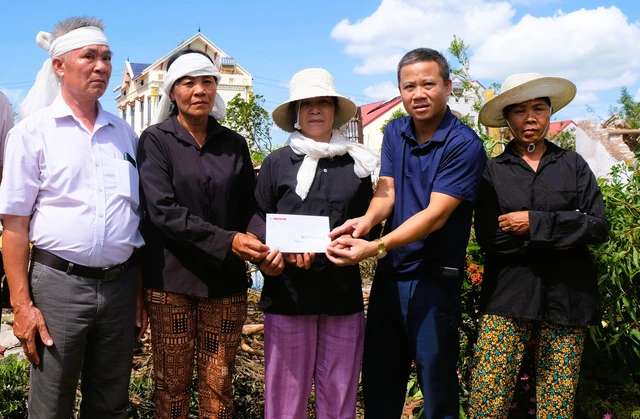 Chiều 2-10, đại diện Báo Người Lao Động đã đến thăm hỏi và trao tận tay 70 triệu đồng, tấm lòng của bạn đọc, đến các gia đình có người thân thiệt mạng trong trận lốc xoáy kinh hoàng xảy ra rạng sáng 29-9 tại các xã Quỹ Nhất, Hồng Phong, Hải Anh và Hải Thịnh (tỉnh Ninh Bình).