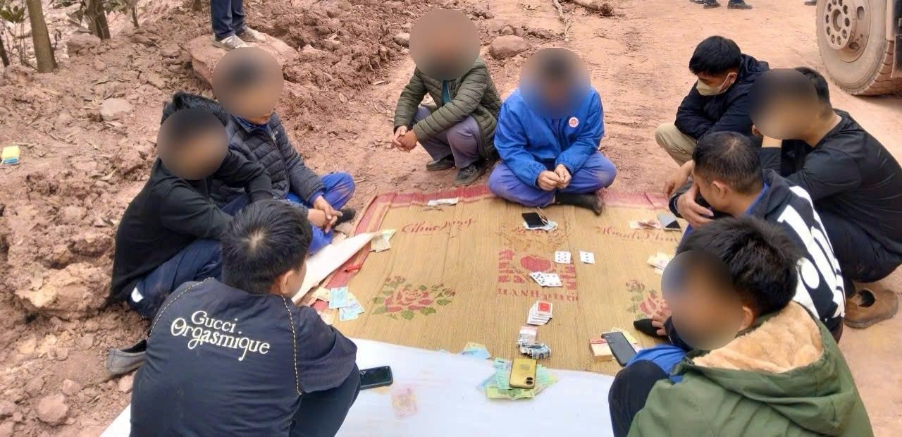 Cụ thể, khoảng 13 giờ 00 phút ngày 02/02/2026, lực lượng chức năng tiến hành kiểm tra khu bãi đất trống thuộc mỏ khai thác vật liệu của Công ty Cổ phần gốm Đất Việt, tại khu Tràng Bảng 2, phường Bình Khê. Tại đây, phát hiện 09 đối tượng đang tụ tập đánh bạc trái phép, bất chấp nguy cơ mất an ninh trật tự và sự kiểm tra của cơ quan chức năng.