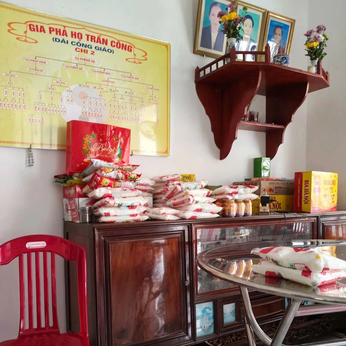 Sau dịp Tết, chị Phạm Thị Yến tổng kết nhận được 25kg đường và 25kg mỳ chính đều là quà biếu Tết của anh em họ hàng. Tương tự, nhà anh Phước Phạm cũng nhận được gần 50kg gia vị.