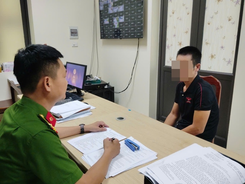 Đối tượng trong vụ án làm việc với cơ quan công an. Ảnh: Công an tỉnh Hưng Yên.