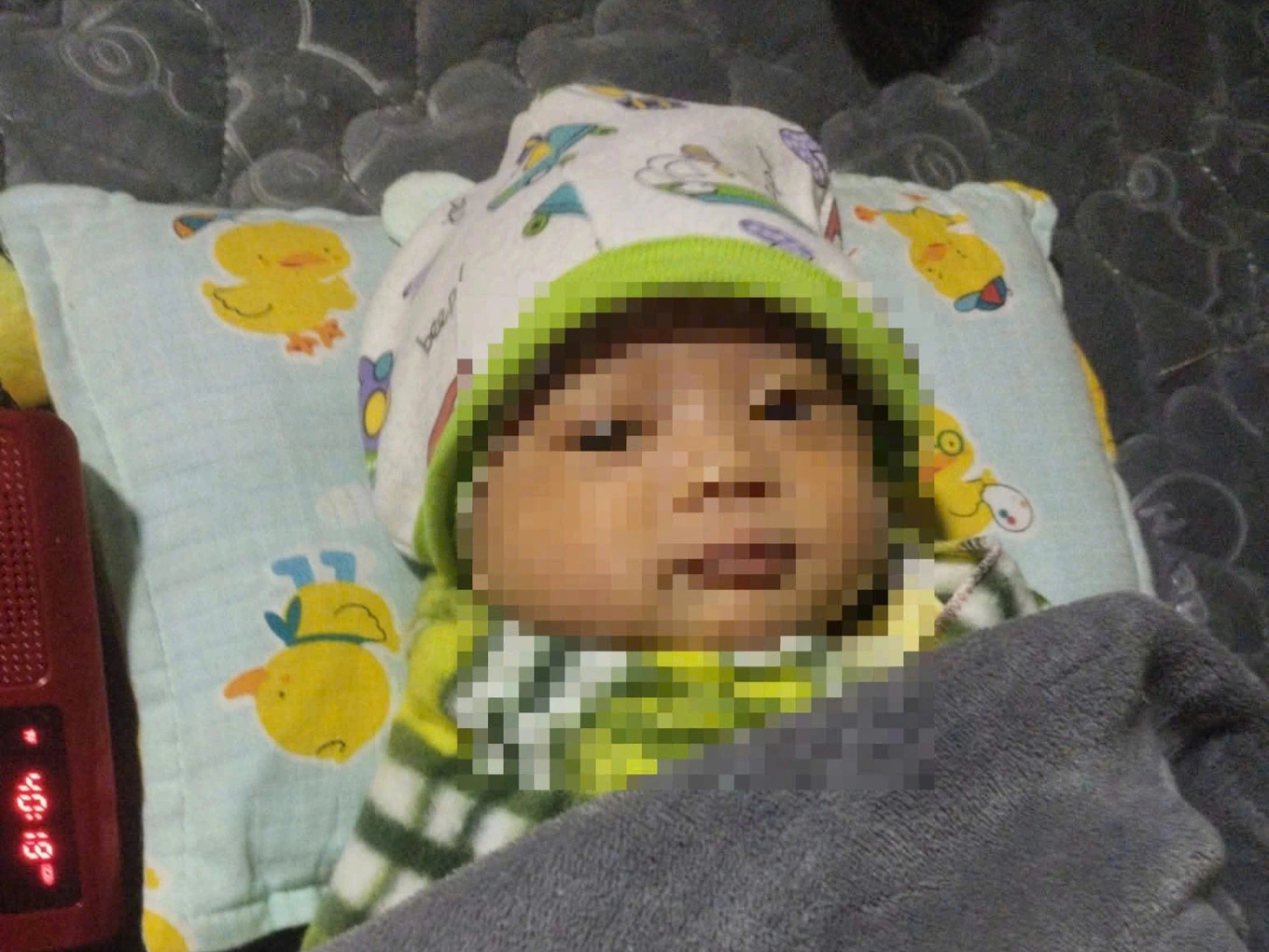 “Thương cháu bé quá, tôi vội bế về nhà sưởi ấm. Trời rét thế này mà ai nỡ bỏ con ở đó”, chị Thủy kể lại. Làn nhựa chỉ có vài chiếc khăn mỏng, không đủ giữ ấm cho cháu bé trong điều kiện nhiệt độ xuống thấp.