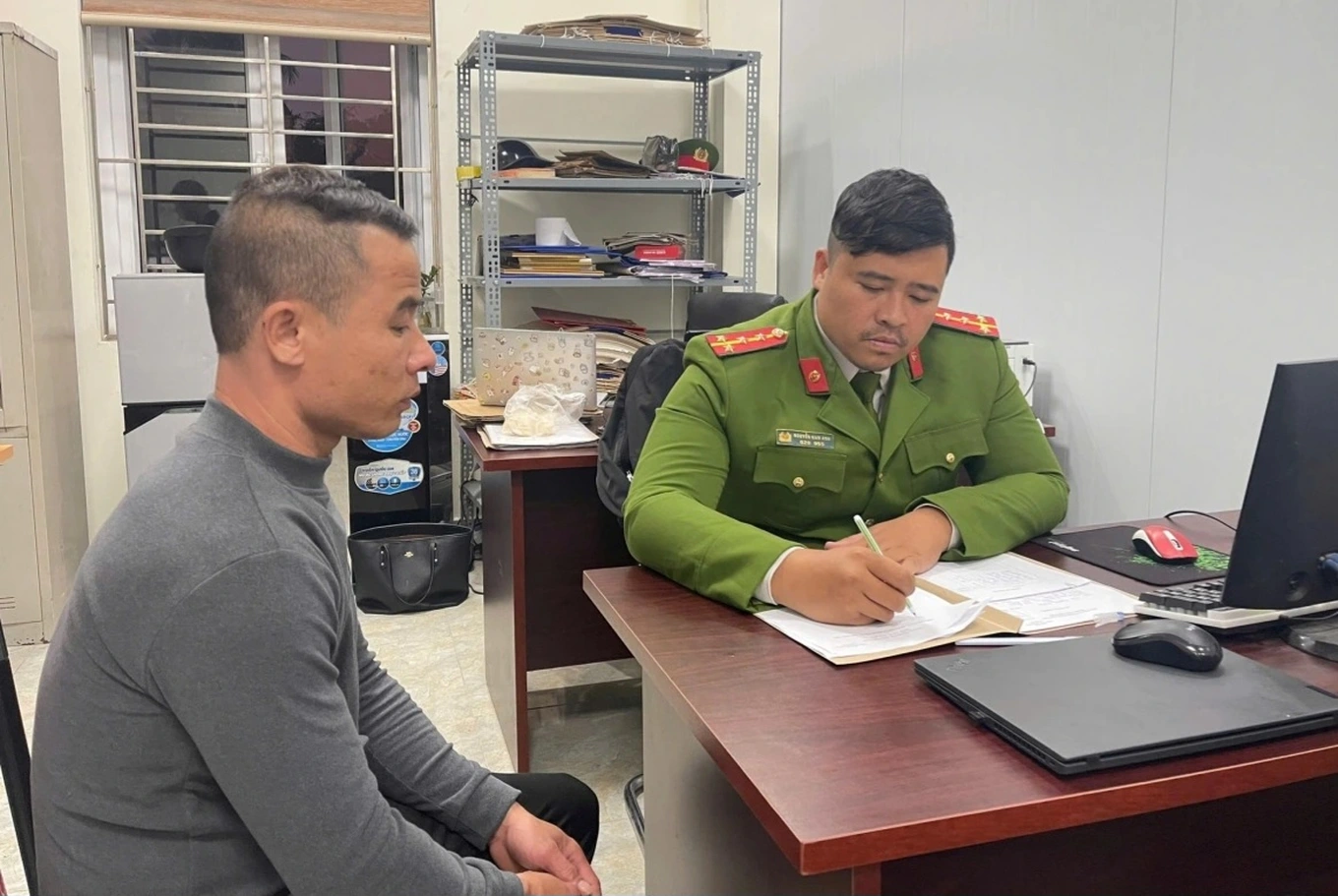 Đối tượng Bùi Quang Tuyên đầu thú tại Công an phường Dương Kinh (Ảnh: Công an cung cấp).
