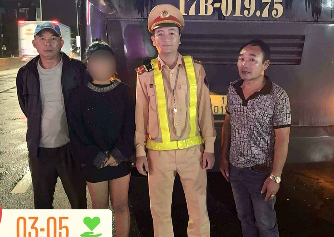 Vào 3 giờ sáng cùng ngày, Đội CSGT đường bộ số 1 – Phòng CSGT Công an tỉnh Quảng Ngãi trong quá trình tuần tra, kiểm soát trên Quốc lộ 1 đã tiếp nhận tin báo của tài xế xe khách BKS 17B-019.75 về việc trên xe có cháu gái quê Quảng Ngãi cần được giúp đỡ.