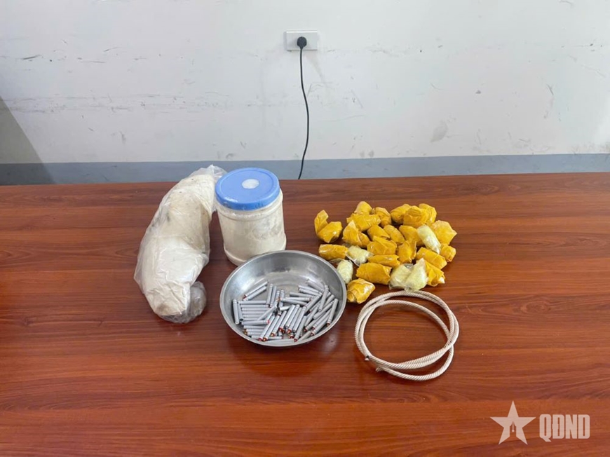 Qua kiểm tra, lực lượng chức năng phát hiện, thu giữ khoảng 2,4kg chất nghi là thuốc nổ, 60 kíp nổ và 1,38 mét dây cháy chậm. Toàn bộ số tang vật đã được lập biên bản, niêm phong.