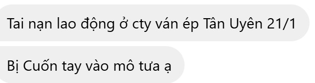 Ngày 21/1, một vụ tai nạn lao động nghiêm trọng đã xảy ra tại một công ty sản xuất ván ép trên địa bàn TP Tân Uyên, tỉnh Bình Dương, khiến một công nhân bị thương nặng ở tay.