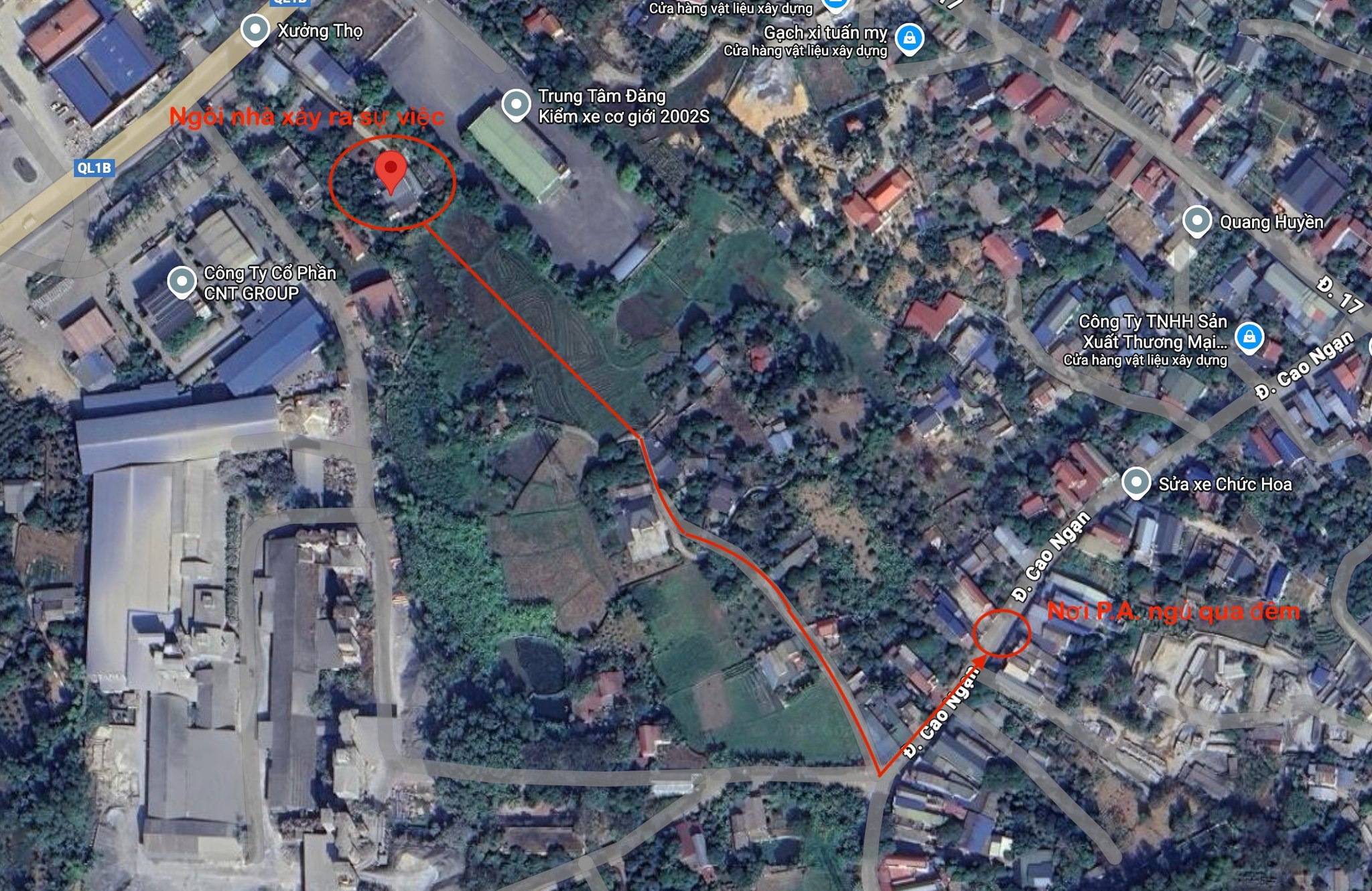 Sơ đồ bỏ chạy của P.A. (Ảnh: Google Maps).