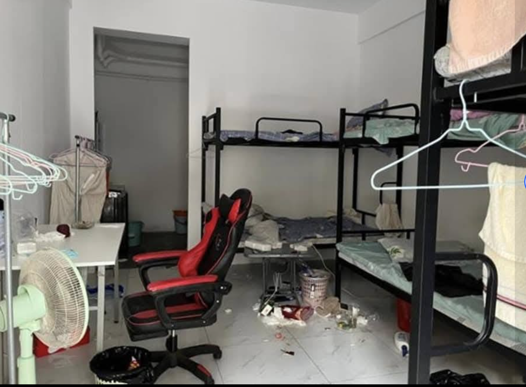 Tuy nhiên, khi đoàn kiểm tra đến, họ chỉ tìm thấy những dấu vết vội vàng của một cuộc tháo chạy: những ly mì ăn liền dở, chai nước lăn lóc, đồ dùng cá nhân và dây điện vương vãi.