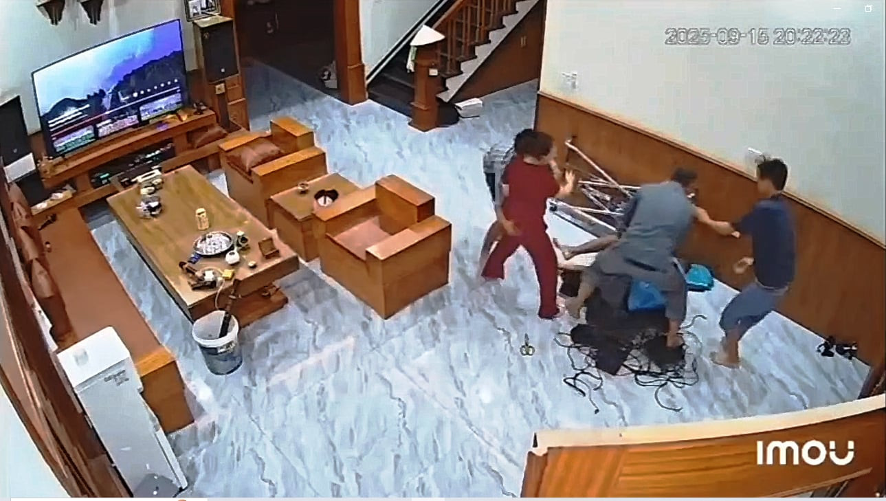 Đang ngồi trong nhà, một người đàn ông ở Ninh Bình bị nhóm người xông vào, dùng ấm pha trà đập vào đầu, rồi đấm đá liên tiếp mặc cho nạn nhân đã gục xuống sàn nhà.