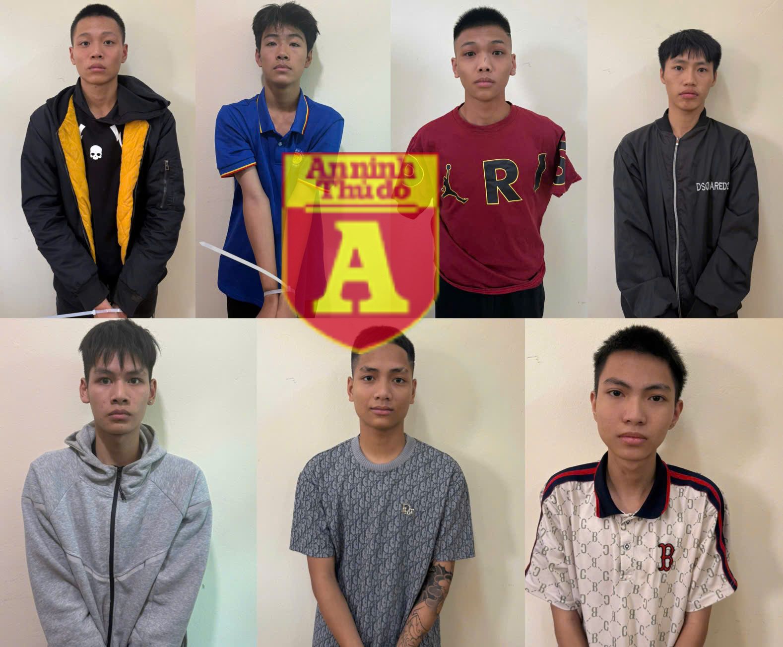 Các đối tượng bị bắt giữ gồm Nguyễn Triệu Đăng Quang, SN 2008, trú tại phường Thanh Xuân; Nguyễn Văn Dũng, SN 2008, trú phường Đại Mỗ; Đỗ Duy Hưng, SN 2008, trú phường Tây Mỗ; Nguyễn Công Minh, SN 2005, trú phường Xuân Đỉnh; Nguyễn Tuấn Vũ, SN 2009, quê Ninh Bình, hiện ở xã An Khánh; Nguyễn Xuân Hồng, SN 2009, trú phường Đại Mỗ và Nguyễn Quang Huy, SN 2008, trú phường Xuân Phương, Hà Nội.
