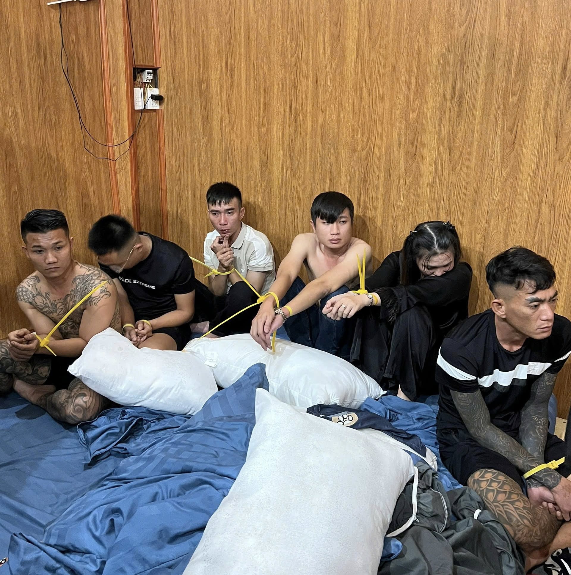 Tại thời điểm kiểm tra, lực lượng chức năng phát hiện 30 nam, nữ thanh niên đang có biểu hiện tổ chức sử dụng trái phép chất ma túy. Ngay lập tức, tổ công tác đã khống chế, lập biên bản, tiến hành khám xét, thu giữ nhiều tang vật liên quan đến ma túy và đưa các đối tượng về trụ sở để làm việc, test nhanh ma túy, qua test nhanh đã có 28 đối tượng dương tính với các chất ma túy.