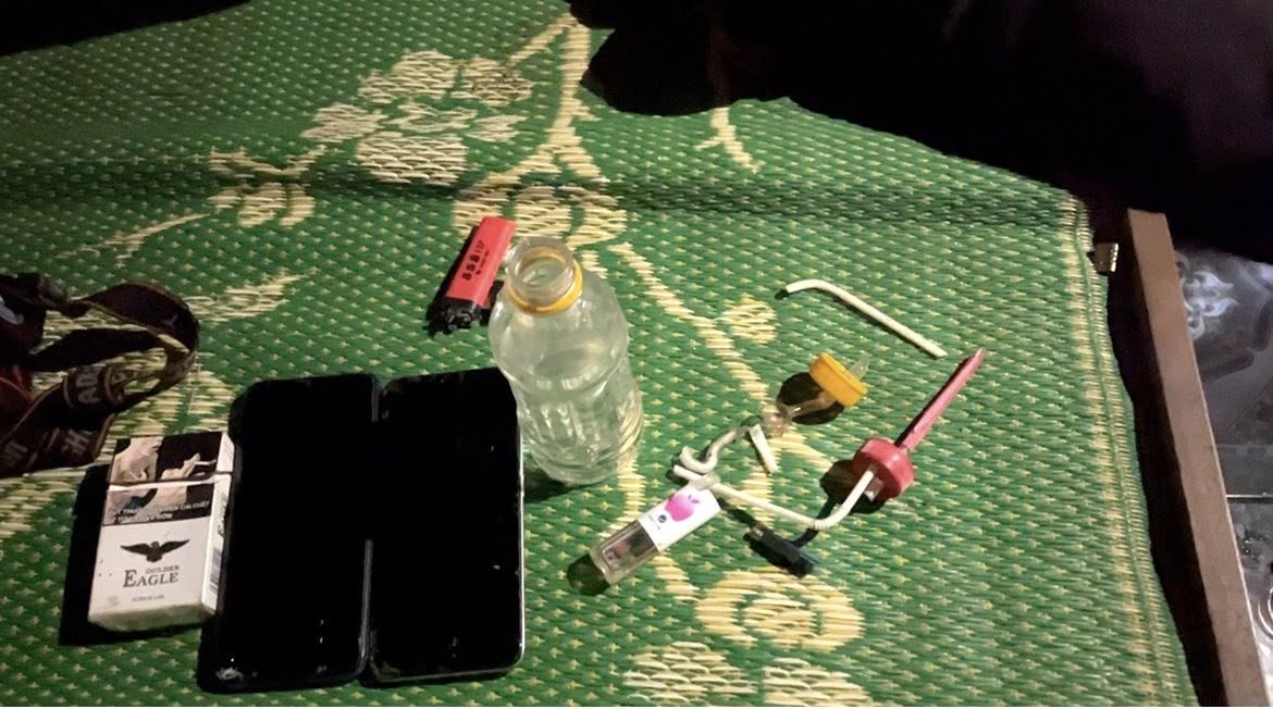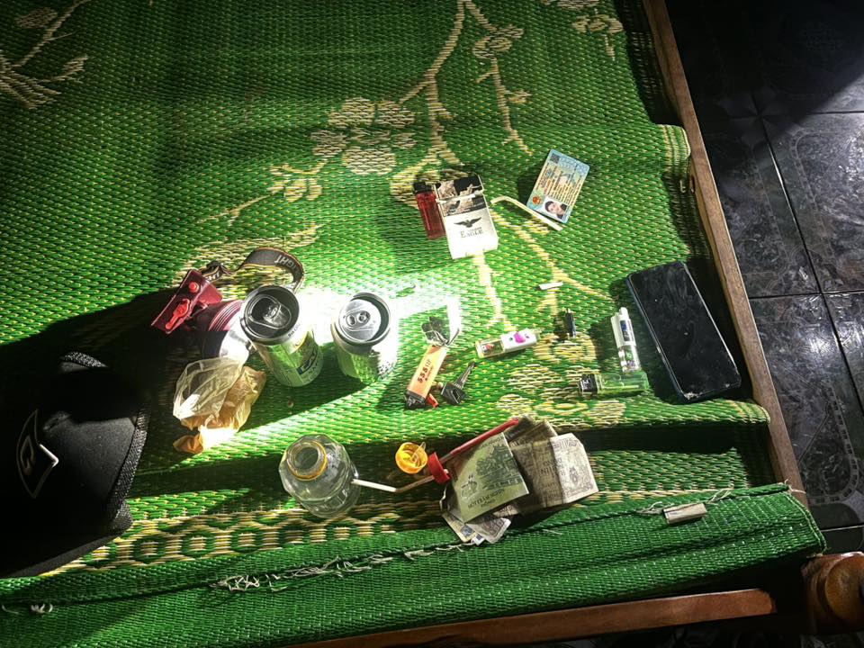 – Tại hiện trường tạm giữ tang vật có liên quan nghi là bộ dụng cụ sử dụng ma tuý. Qua test nhanh cả 05 đối tượng đều cho kết quả dương tính với ma tuý đá.