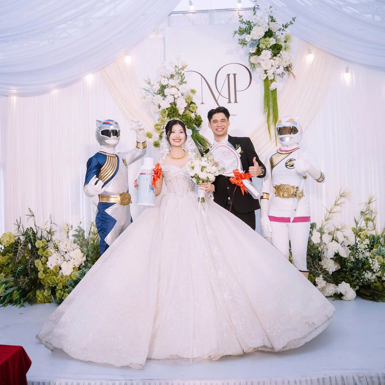Khi đưa ảnh cưới về nhà, hai bên gia đình đều phản đối, cho rằng không phù hợp để treo trong đám cưới. Tuy nhiên, cặp đôi vẫn “lén” mang bức ảnh ra trưng bày tại rạp cưới.