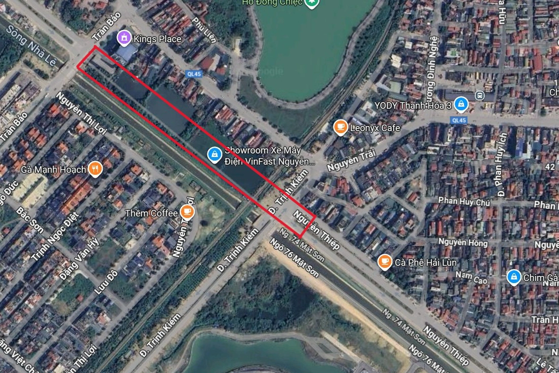Vị trí dự án cầu dây văng vượt đường sắt Bắc – Nam (Ảnh: Google Maps).