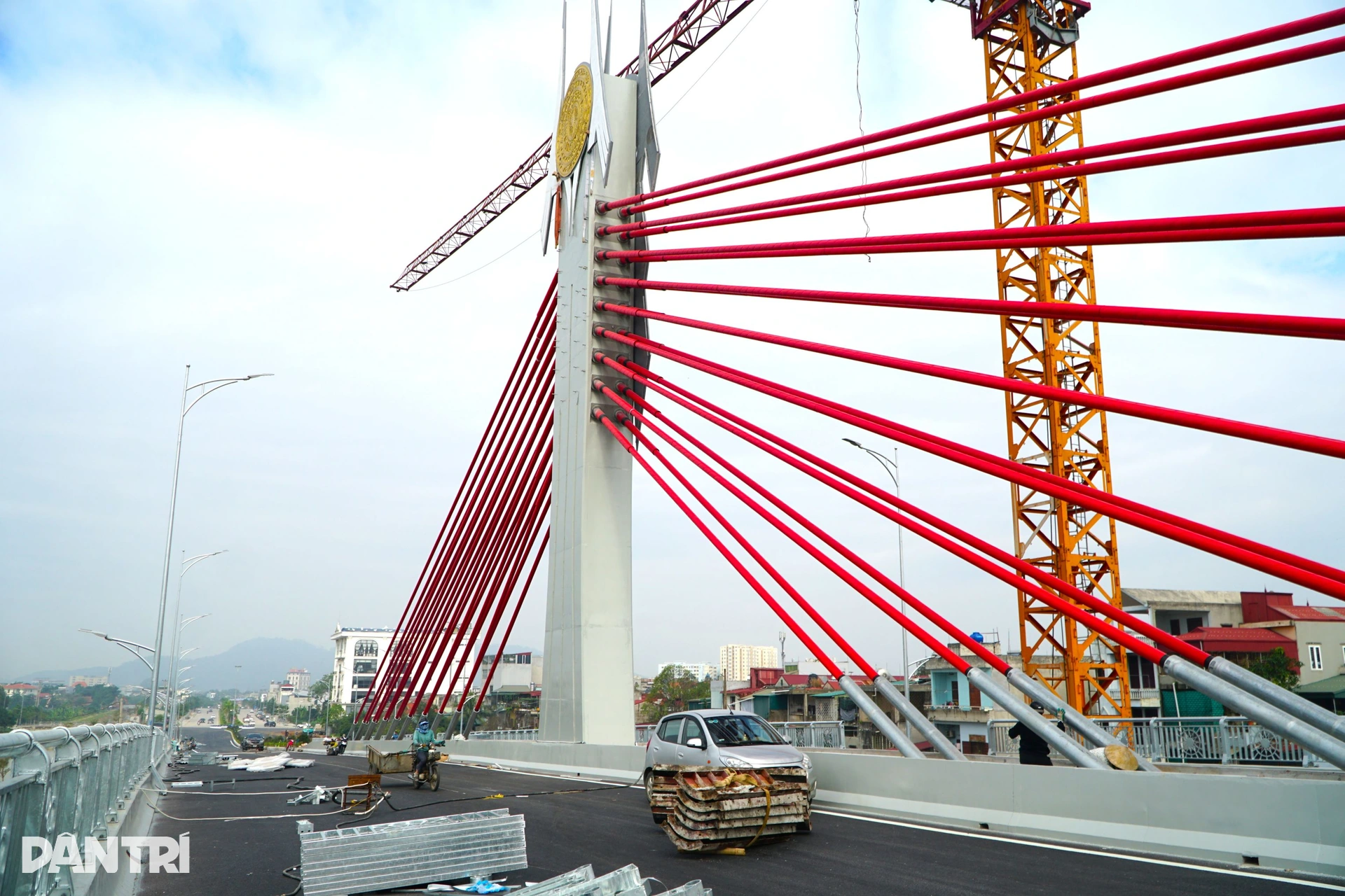 Theo ghi nhận vào sáng 16/12, các hạng mục dây văng trên cầu đã được lắp đặt xong, đơn vị thi công đang trang trí lại các họa tiết phụ theo thiết kế.