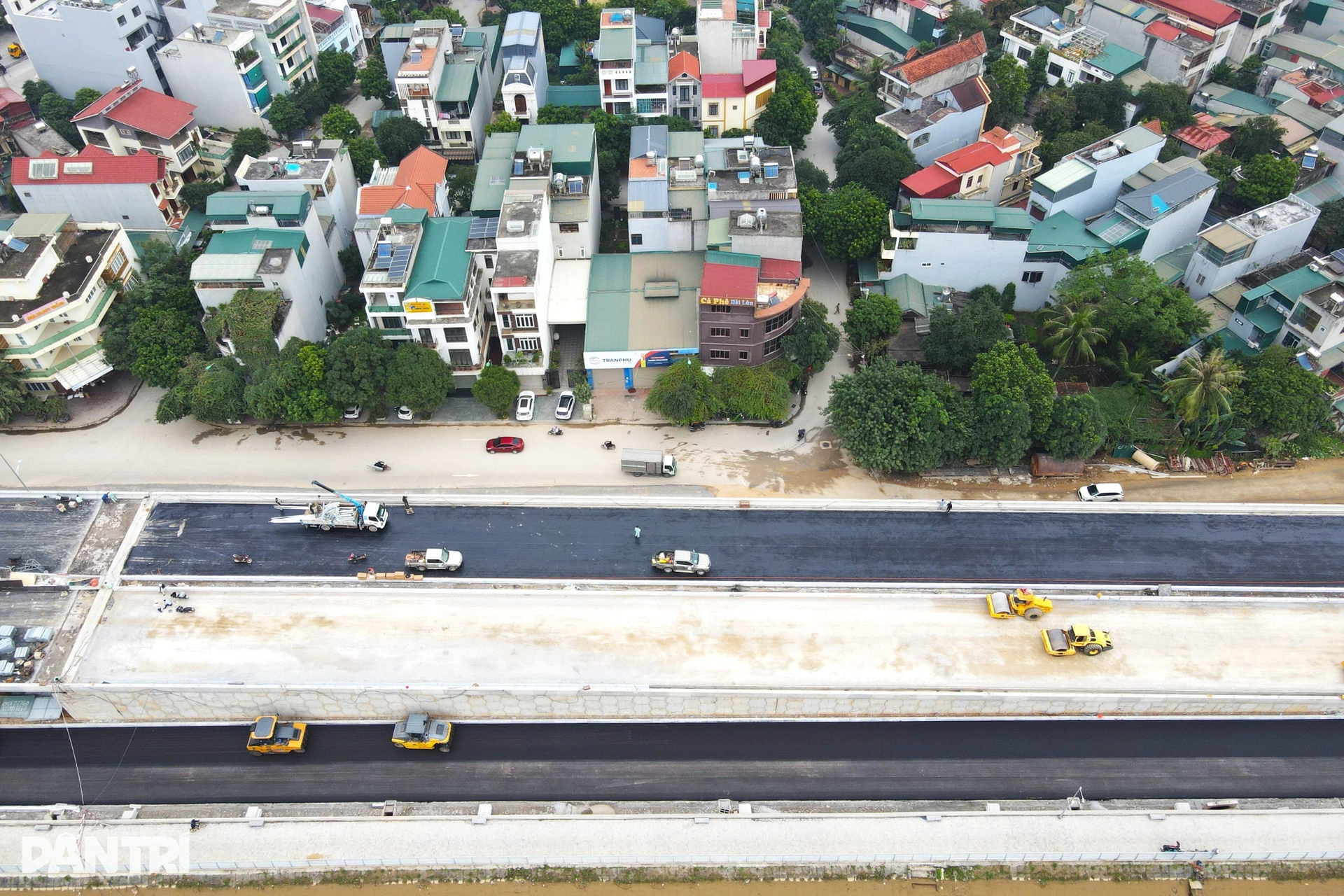Đơn vị thi công đã hoàn tất việc thảm nhựa đường. Đội ngũ công nhân đang gấp rút sơn vạch kẻ đường để đảm bảo đúng tiến độ thông xe kỹ thuật.