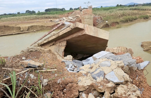 Cầu sập sau bão, gần 300 học sinh Thanh Hóa lội đường vòng đến lớp