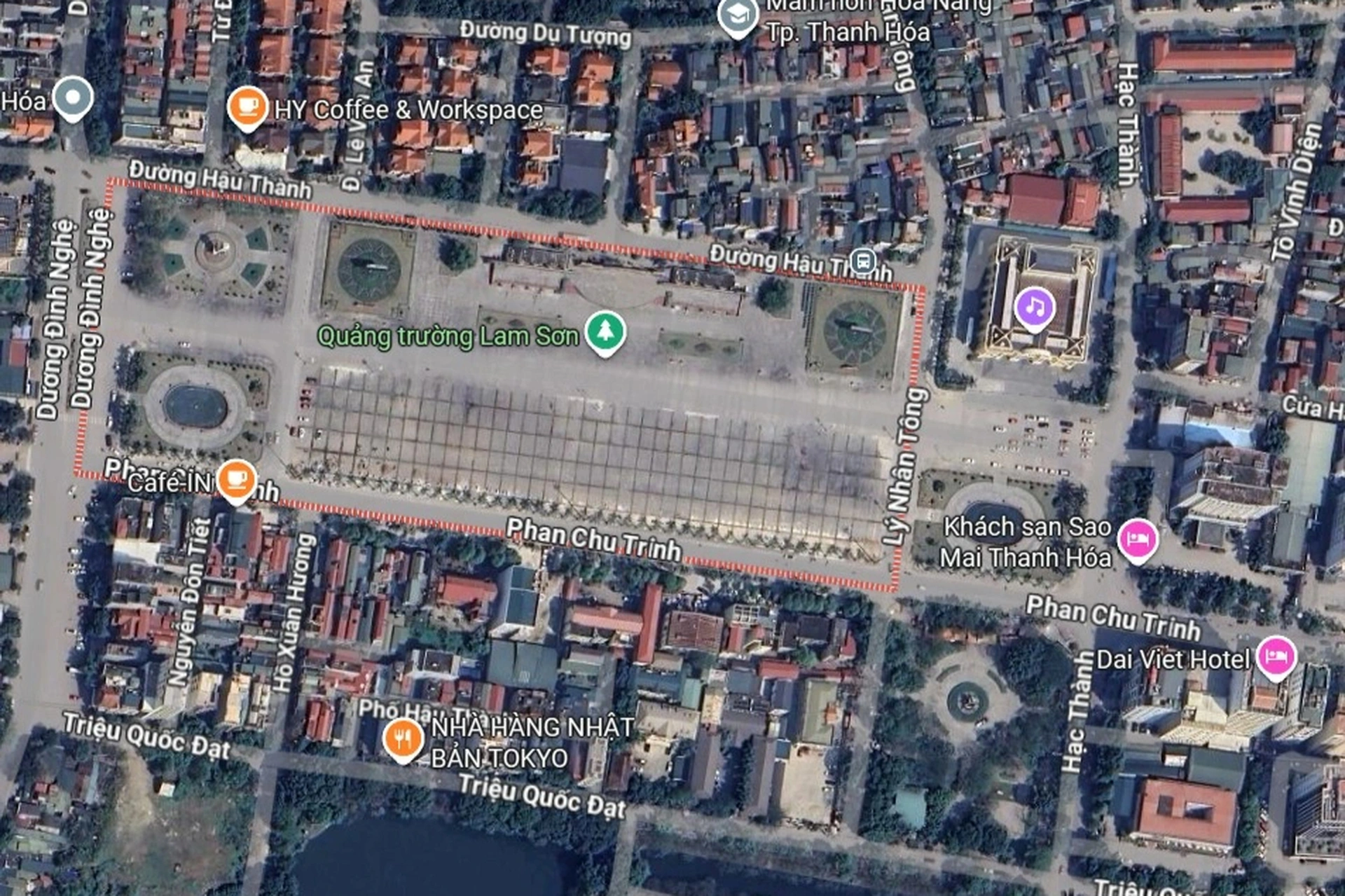 Vị trí hội chợ hoa xuân ở quảng trường Lam Sơn, tỉnh Thanh Hóa (Ảnh: Google Maps).