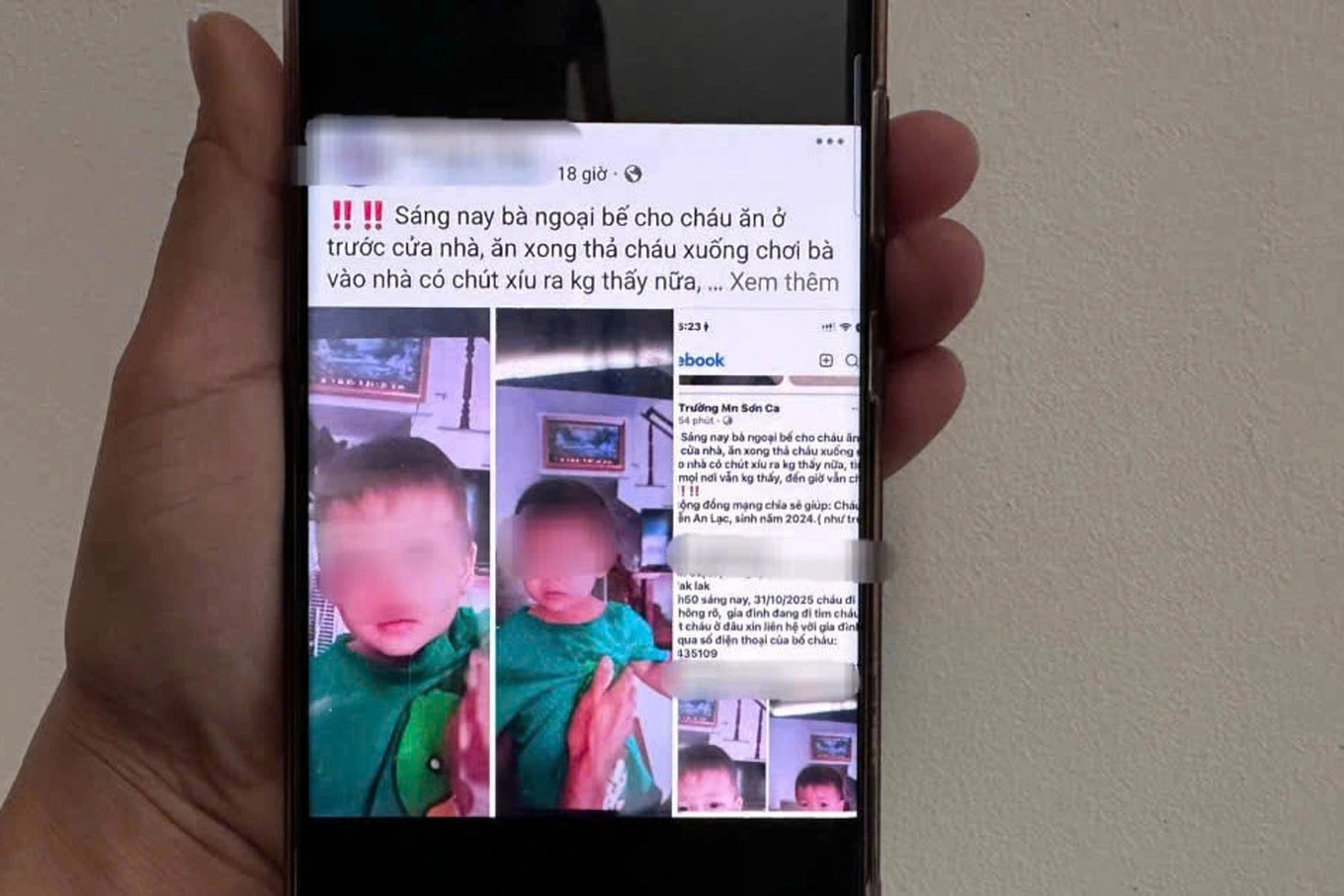 Trước đó Gia đình đăng thông tin tìm kiếm cháu bé trên mạng xã hội