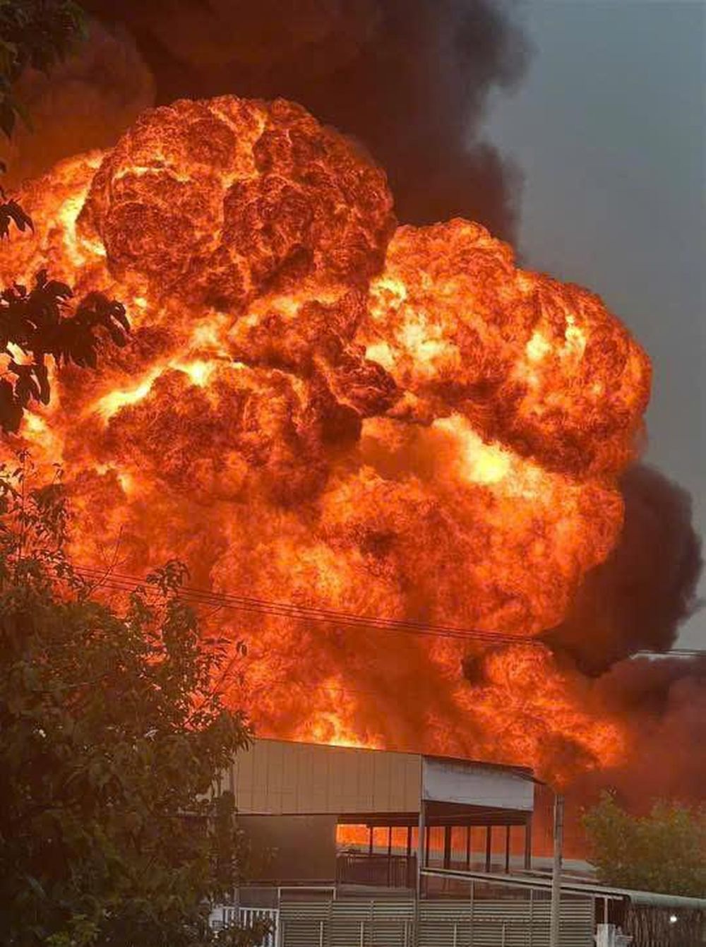 Lửa bùng phát tại kho chứa sơn ở TPHCM kèm nhiều tiếng nổ, khói đen bốc cao. Lực lượng PCCC huy động nhiều xe khẩn trương dập lửa.