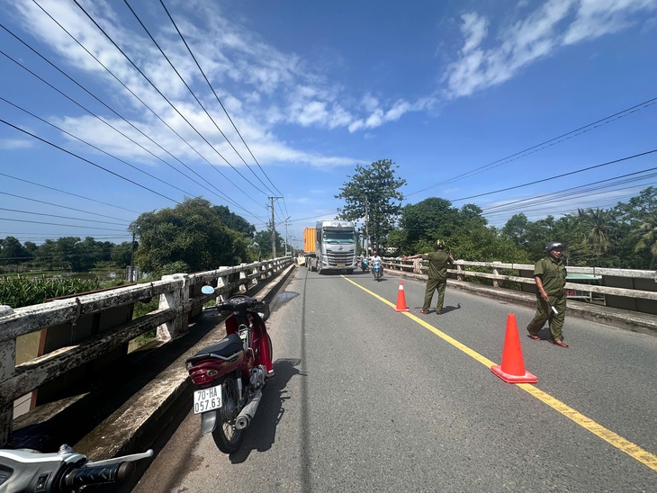 Thời điểm này, container kéo theo rơ moóc di chuyển trên quốc lộ 22B theo hướng từ ngã tư đường ĐT.786 về hướng ngã ba đường 30-4, khi lên cầu Hiệp Hòa thuộc địa bàn khu phố Hiệp Tân, phường Thanh Điền thì va chạm với xe máy đang chạy cùng chiều phía bên phải.