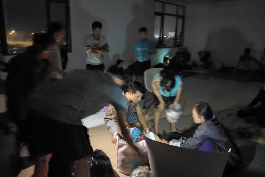 | Nhiều người phải trụ lại ở chung cư trong cảnh mất điện vì không còn chỗ để đi. |