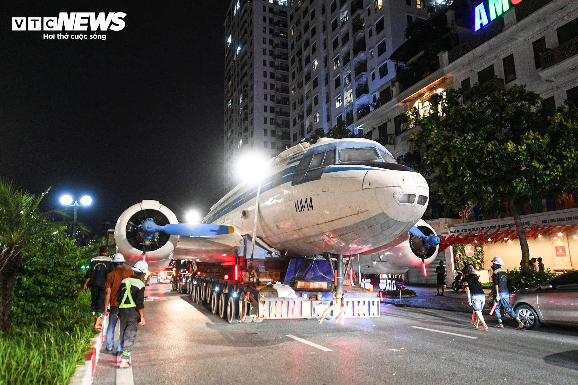 Theo ghi nhận của PV Báo Điện tử VTC News, để đưa chiếc máy bay khối lượng hàng chục tấn di chuyển trên phố, lực lượng chức năng phải dùng xe moóc siêu trường siêu trọng, di chuyển chậm rãi dưới sự dẫn đường và bảo vệ nghiêm ngặt.