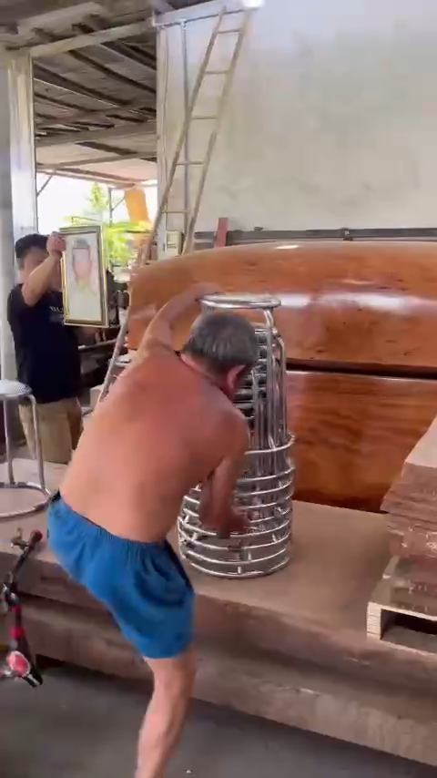 Chuyện lạ có thật ở Hoc Môn, TP.HCM, ông Tư Bình – thợ mộc già hơn 70 tuổi – đã tự đóng sẵn cho mình một chiếc quan tài và đặt ngay trong nhà. Ông còn chọn ảnh chân dung, lồng khung kính để sẵn trên bàn thờ.