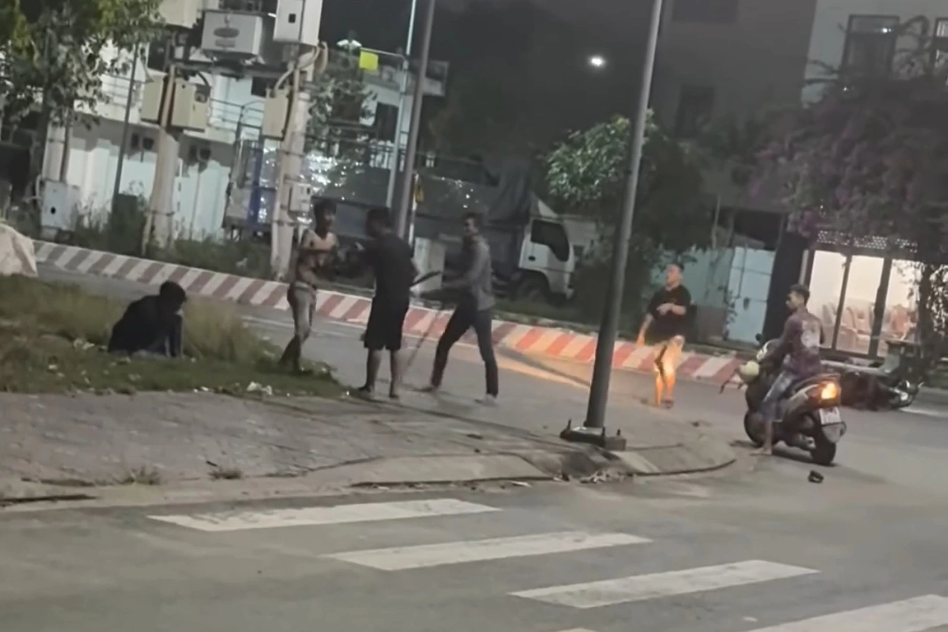 Tối cùng ngày, người dùng mạng xã hội lan truyền clip ghi cảnh 4 thanh niên dùng hung khí đánh liên tiếp một người nằm dưới đất. Nạn nhân co người chịu đòn, một số người xung quanh đứng quan sát, không dám can thiệp.