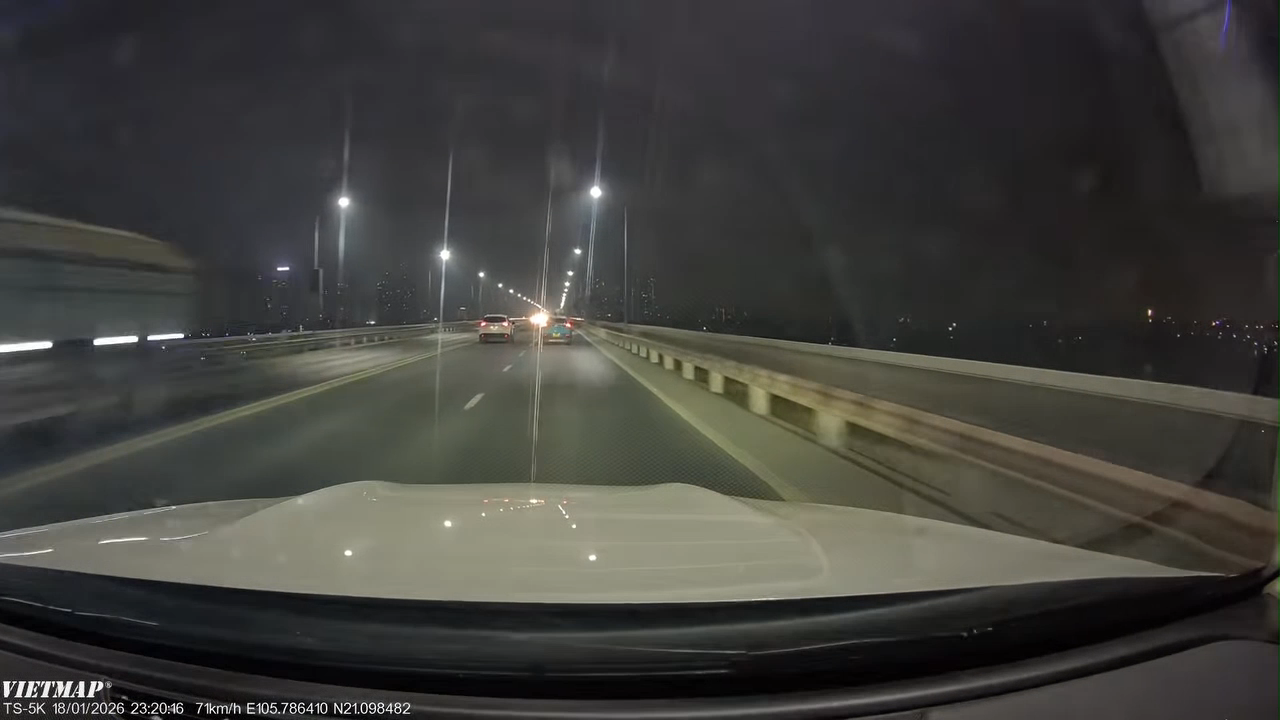 Chiếc ô tô con mất lái và trượt bánh, sau đó văng sang làn ngược chiều và tiếp tục va chạm mạnh với một xe khác ở phía đối diện. Vụ việc xảy ra vào đêm 18/1 trên cầu Thăng Long – Hà Nội và được camera hành trình của xe ô tô khác ghi lại.
