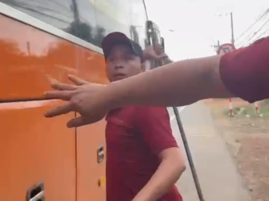 Sau đó, chiếc xe khách dừng lại và diễn biến sự việc tiếp theo như nội dung clip chia sẻ trên mạng xã hội.