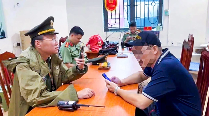 Công an làm việc với ông Đ. – Ảnh: Cơ quan công an cung cấp