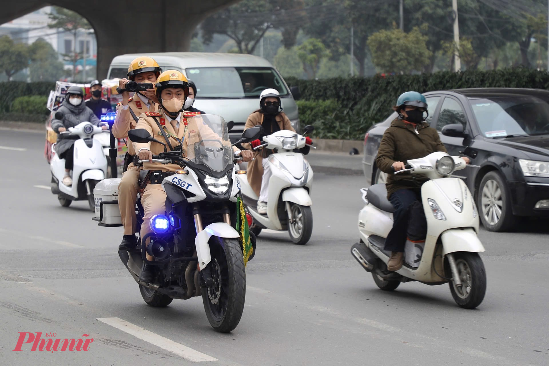 | Cảnh sát tuần tra, ghi hình xử lý các xe vi phạm. |
