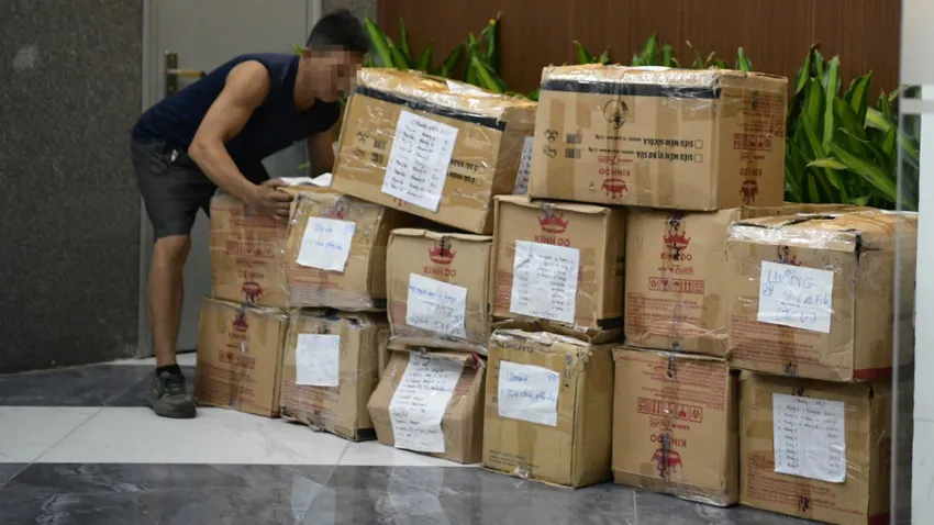 Các thùng được niêm phong và lực lượng công an giám sát quá trình vận chuyển các tài liệu từ trong sảnh toà nhà lên xe. Do số lượng thùng đựng tài liệu nhiều, công an sử dụng đến xe tải để vận chuyển.