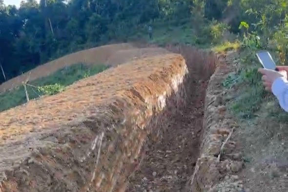 Theo ông Quang Anh, ngày 15/11/2025 khi lên kiểm tra thì phát hiện toàn bộ 4 lán và các vật dụng giá trị khoảng 150 triệu đồng đã bị trộm cắp và phá hoại. Ngày 20/11/2025, ông phát hiện có người đã dùng máy xúc đào một đường hào dài khoảng 180m, rộng 2m, sâu 2m và lấp hết các nền lán cũ, đồng thời lấp luôn lối đi lại trên phần đất của ông.