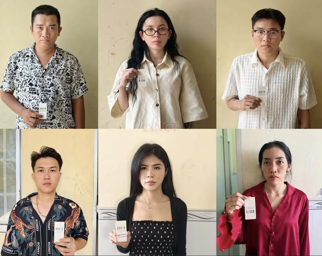 Cụ thể, tại phòng tầng trệt có 06 đối tượng (03 nam, 03 nữ) gồm: N.T.N (SN 1994; ĐKTT: xã Tân Phước Hưng, TP Cần Thơ), C.T.H.Y (SN 1997; ĐKTT: Vĩnh Quang, An Giang), L.P.V (SN 2000; ĐKTT: phường Bạc Liêu, Cà Mau), L.P.A.K (SN 1997; ĐKTT: Phường An Bình, TP Cần Thơ), N.T.C.T (SN 2007; ĐKTT: xã Đông Thuận, TP Cần Thơ), H.T.A.M (SN 1997; ĐKTT: xã Vĩnh Thuận Đông, TP Cần Thơ). Tang vật thu giữ gồm: 01 đĩa sứ tròn màu trắng trên bề mặt có chứa chất bột màu trắng nghi là ma túy, 01 thẻ căn cước công dân số 086300008244 dính chất bột nghi là ma túy, 01 tờ tiền mệnh giá 10.000 đồng cuộn tròn dạng ống có dính chất bột nghi là ma túy, 01 đoạn ống nhựa màu xanh, 01 túi nilon màu đen dính chất bột nghi là ma túy cùng nhiều tang vật khác gồm: 01 loa, 01 đèn, 10 điện thoại di động, 01 máy tính bảng, 05 túi xách màu đen, 02 ví da, 01 túi mỹ phẩm trong suốt, 01 vali màu đen, 01 đồng hồ và 400.000 đồng tiền mặt.