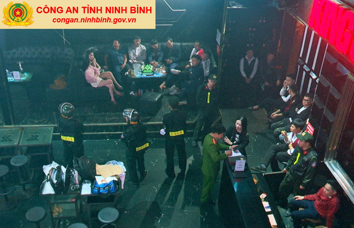 Thời điểm kiểm tra, 2 quán bar đang mở nhạc với công suất lớn. Qua test nhanh chất ma túy với gần 200 khách và nhân viên phục vụ, phát hiện 30 trường hợp dương tính với ma túy. Đấu tranh làm rõ đủ căn cứ tạm giữ hình sự 12 đối tượng về hành vi tổ chức sử dụng trái phép chất ma túy. Đấu tranh mở rộng, truy xét nóng nguồn ma túy, bắt giữ 04 đối tượng trên địa bàn có hành vi bán trái phép chất ma tuý cho các đối tượng sử dụng ở 2 quán bar. Tang vật thu giữ tổng cộng 185 viên ma túy tổng hợp dạng thuốc lắc, 201 túi zíp bên trong có chứa ma túy ketamine, 06 túi ma túy nước vui, 05 bình khí N20 và nhiều vật chứng khác có liên quan. Hiện Công an tỉnh Ninh Bình đang tiếp tục đấu tranh mở rộng, củng cố hồ sơ, điều tra, xử lý các đối tượng phạm tội theo quy định của pháp luật.