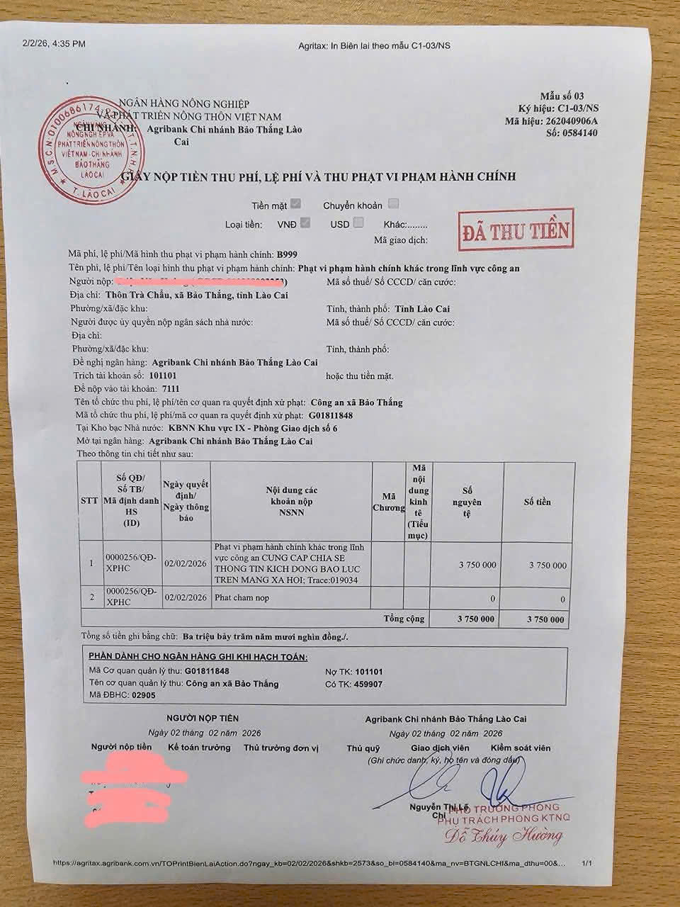 Qua đấu tranh, khai thác, Triệu Văn H đã thừa nhận toàn bộ hành vi vi phạm của mình. Căn cứ điểm d, khoản 1, Điều 101, Nghị định 15/2020/NĐ-CP ngày 03/2/2020 của Chính phủ quy định xử phạt vi phạm hành chính trong lĩnh vực bưu chính, viễn thông, tần số vô tuyến điện, công nghệ thông tin và giao dịch điện tử: Ngày 02/02/2026, Trưởng Công an xã Bảo Thắng đã ra Quyết định xử phạt vi phạm hành chính đối với Triệu Văn H về hành vi “Cung cấp, chia sẻ thông tin kích động bạo lực trên mạng xã hội”, mức phạt tiền là 3.750.000đ và buộc gỡ bỏ thông tin vi phạm.