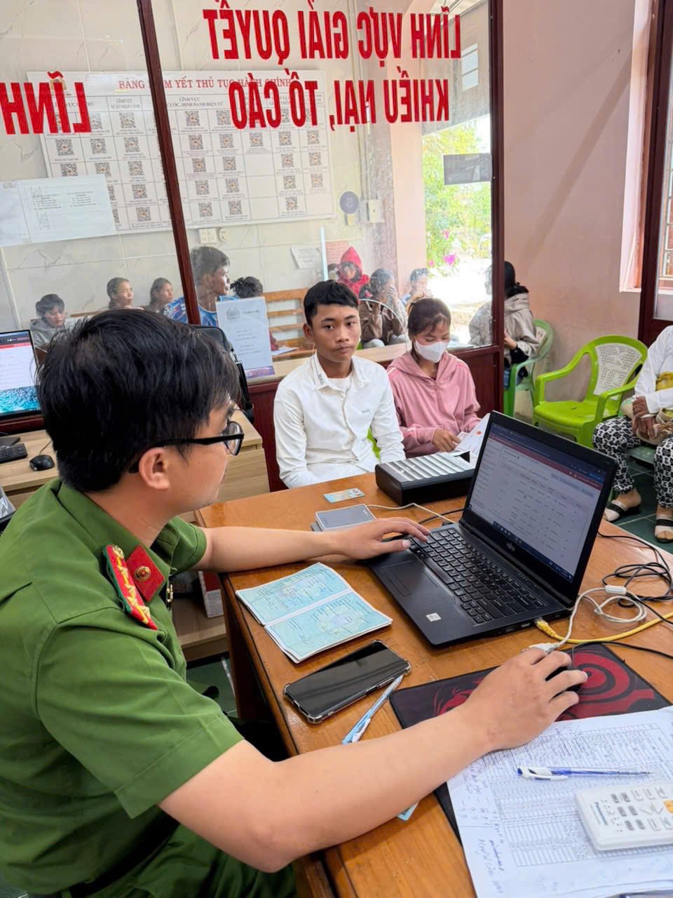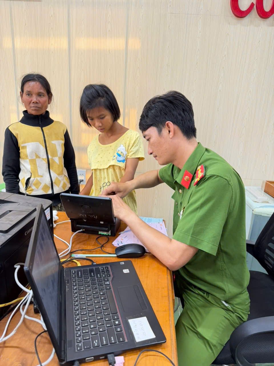 🌷Phát huy tinh thần “Gần dân nhất”, cán bộ, chiến sĩ Công an xã đã tích cực phối hợp với các ban, ngành, đoàn thể địa phương đẩy mạnh tuyên truyền, vận động Nhân dân, hỗ trợ phương tiện đưa người dân đặc biệt là các em học sinh và người dân tại khu vực 4 làng đồn tham gia làm căn cước công dân và đăng ký định danh điện tử.