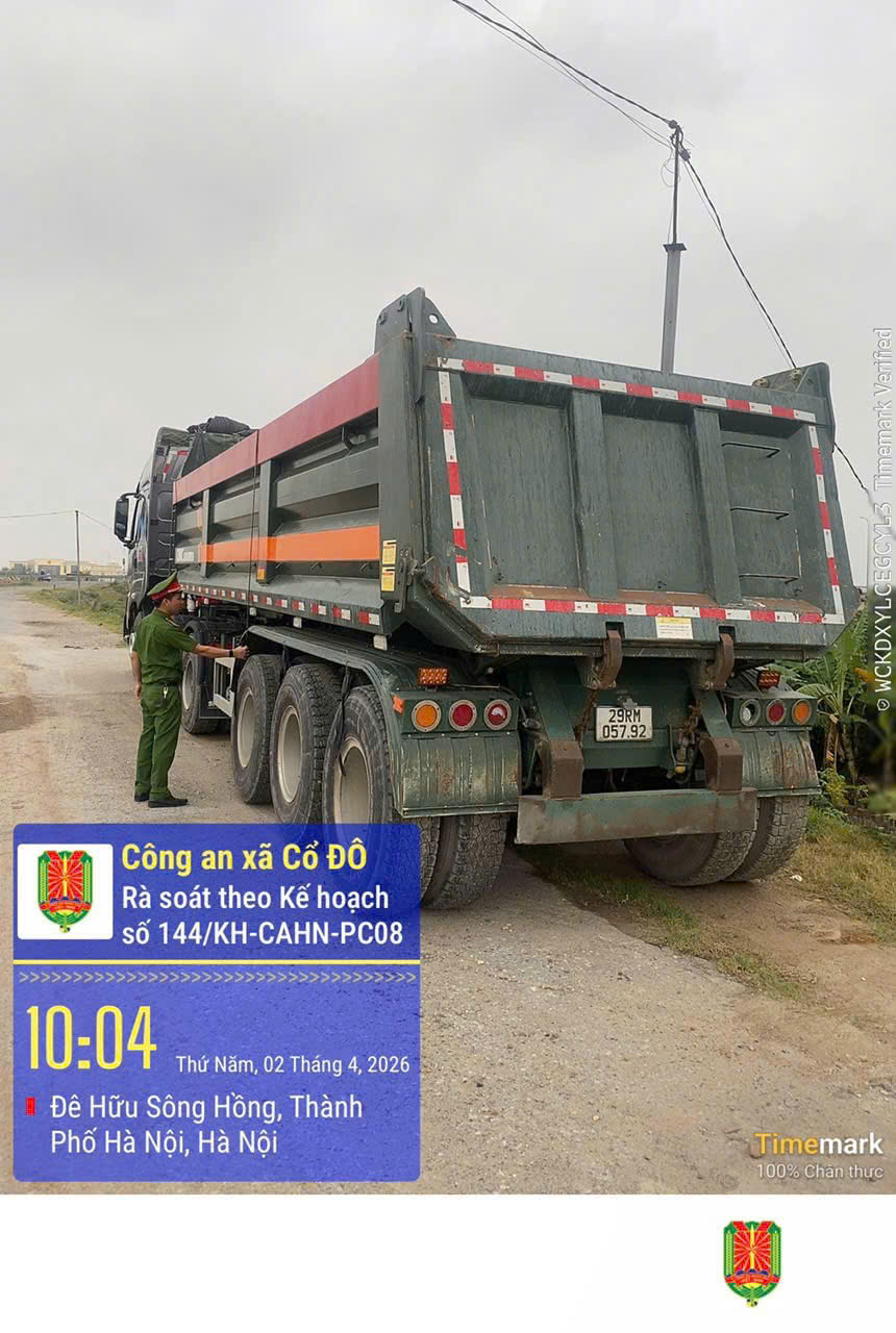 Thực hiện kế hoạch số 144/KH-CAHN ngày 30/3/2026 về mở đợt tổng rà soát xe tải tự đổ, sơ mi rơ moóc từ 15 tấn trở lên, siết chặt quản lý, xử lý vi phạm và đảm bảo an toàn giao thông, nhằm tăng cường quản lý phương tiện vận tải, phòng ngừa vi phạm và bảo đảm trật tự, an toàn giao thông, Công an xã Cổ Đô triển khai cao điểm tổng rà soát các phương tiện ô tô tải tự đổ và xe sơ mi rơ moóc tự đổ có tải trọng từ 15.000kg trở lên trên địa bàn xã.
