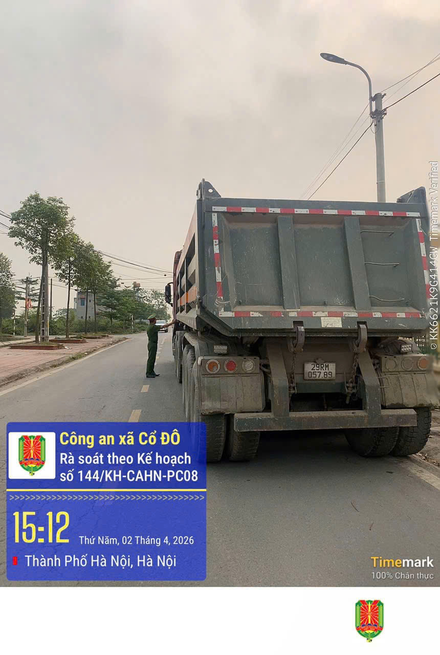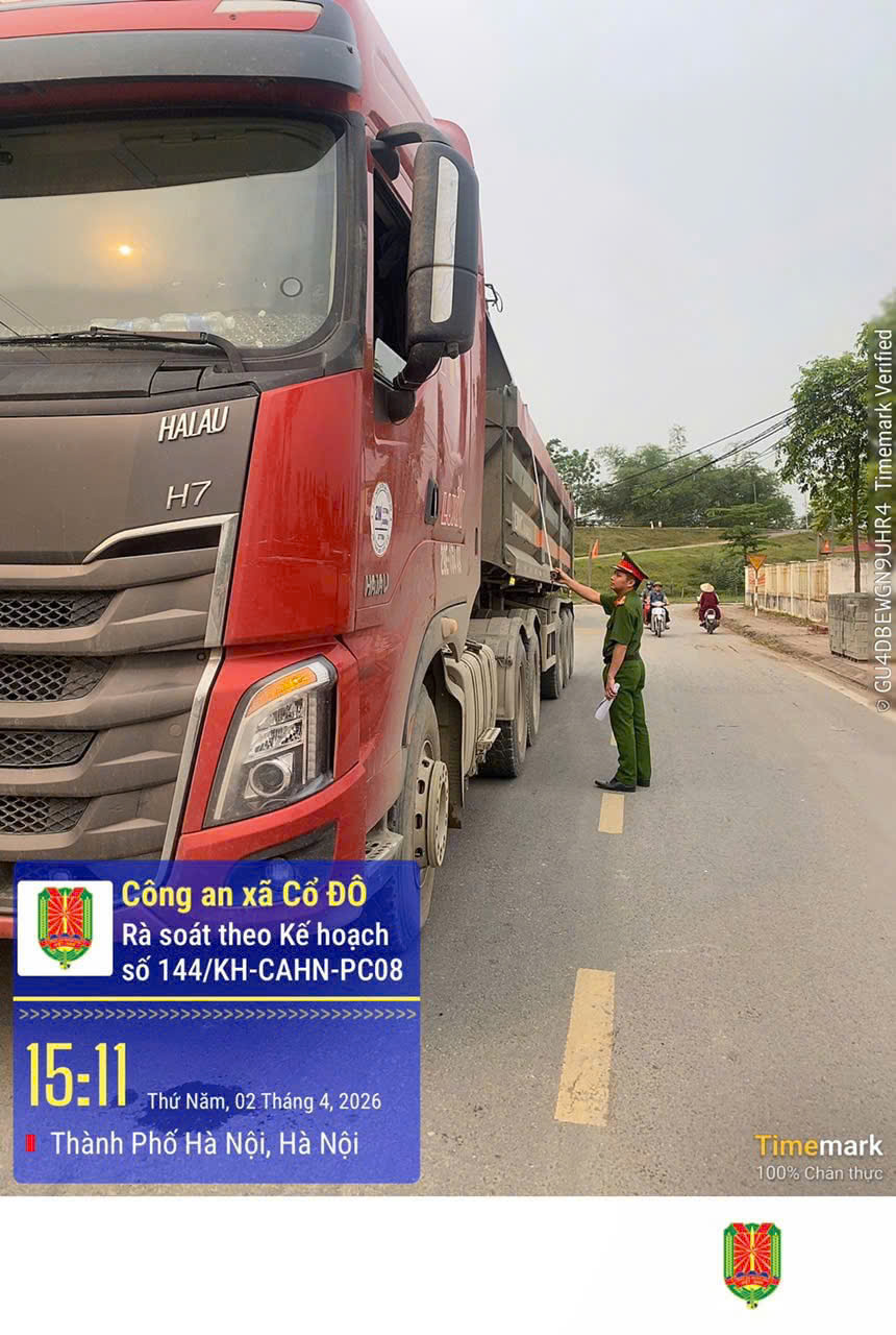 Thực hiện kế hoạch số 144/KH-CAHN ngày 30/3/2026 về mở đợt tổng rà soát xe tải tự đổ, sơ mi rơ moóc từ 15 tấn trở lên, siết chặt quản lý, xử lý vi phạm và đảm bảo an toàn giao thông, nhằm tăng cường quản lý phương tiện vận tải, phòng ngừa vi phạm và bảo đảm trật tự, an toàn giao thông, Công an xã Cổ Đô triển khai cao điểm tổng rà soát các phương tiện ô tô tải tự đổ và xe sơ mi rơ moóc tự đổ có tải trọng từ 15.000kg trở lên trên địa bàn xã.