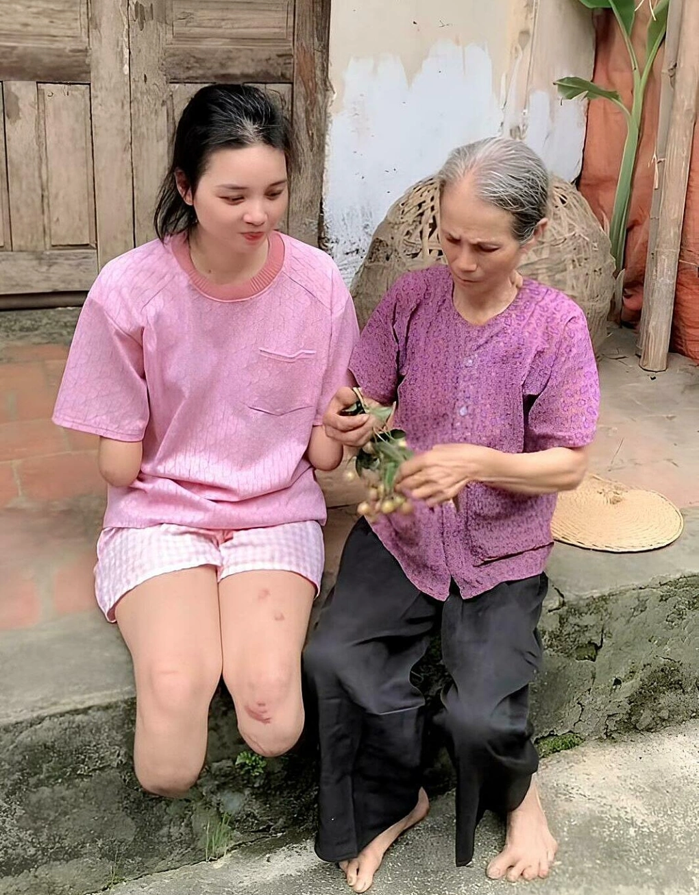 Cô nuốt từng thìa sữa, chút cháo. Bắt đầu từ những ngày đó, bà Thúy hay mở những video về người khuyết tật làm lại cuộc đời cho con xem.
