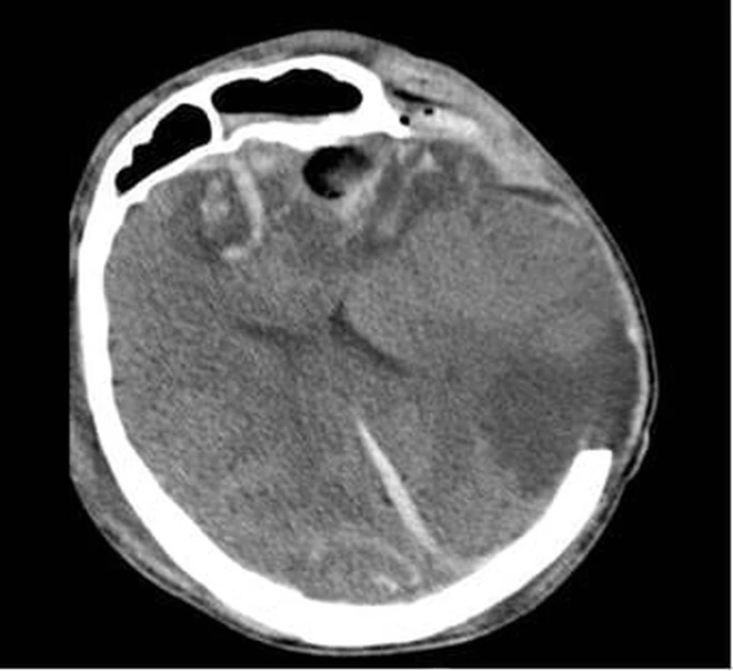 Tại Bệnh viện Nhân dân 115, bệnh nhân G.A nhập viện trong tình trạng hôn mê sâu, phải thở máy nội khí quản. Kết quả chụp CT sọ não cho thấy dập não xuất huyết rải rác nhiều vị trí, phù não lan tỏa nặng, tiên lượng rất dè dặt, nguy cơ tử vong cao. Bệnh nhân được điều trị tích cực tại Đơn vị Hồi sức ngoại khoa, Khoa Gây mê Hồi sức với sự theo dõi sát sao của ê-kíp chuyên môn.