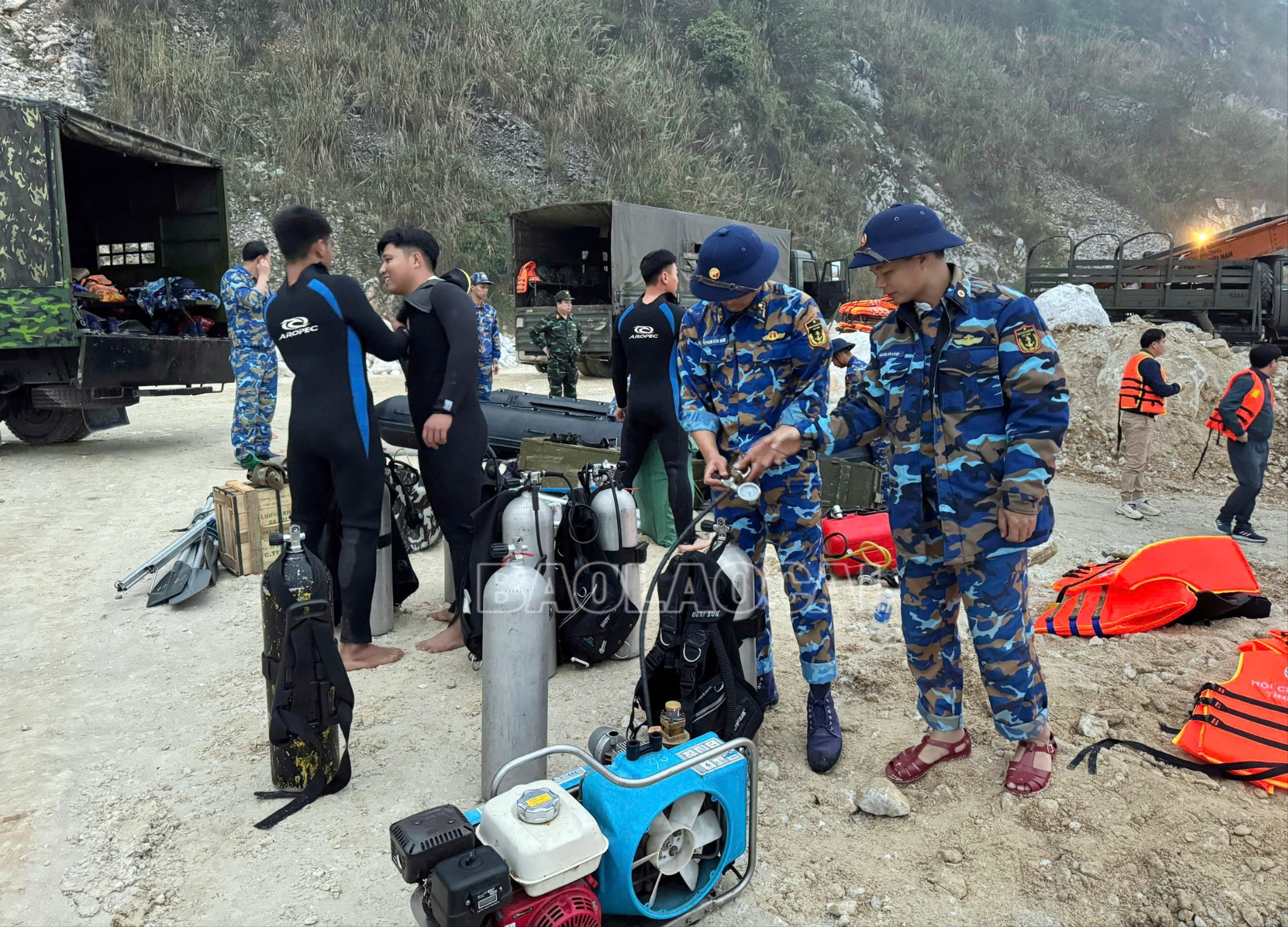 Đến rạng sáng ngày 23/2 lực lực đặc công nước đã có mặt tại hiện trường để tham gia cứu nạn.