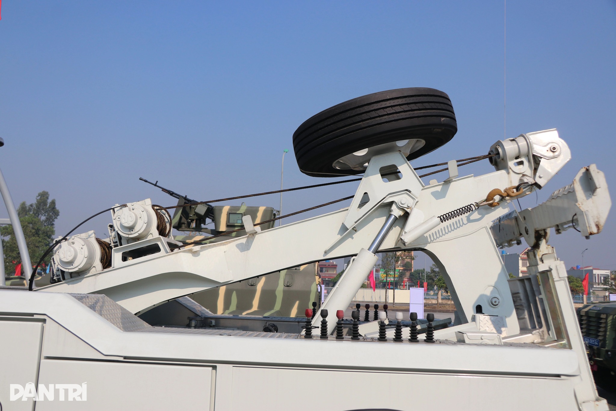 Phía đầu xe trang bị thiết bị dây cáp phục vụ nhiều nhiệm vụ khác nhau, trong đó có nhiệm vụ kéo xe khác hoặc các thiết bị nặng.