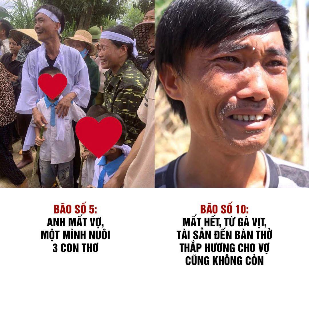 Đó là câu chuyện của anh Đ.V.T., xóm Trung Sơn, xã Phú Sơn, huyện Tân Kỳ (Nghệ An) — người đàn ông gầy gò với ánh mắt rưng rưng buồn bã. Anh lặng lẽ gánh gồng nuôi ba đứa con nhỏ, sau khi người vợ thân yêu bị lũ cuốn trôi trong cơn bão số 5. Đến bão số 10, anh lại mất tất cả — từ con gà, con vịt đến cả bàn thờ thắp hương cho vợ cũng không còn.