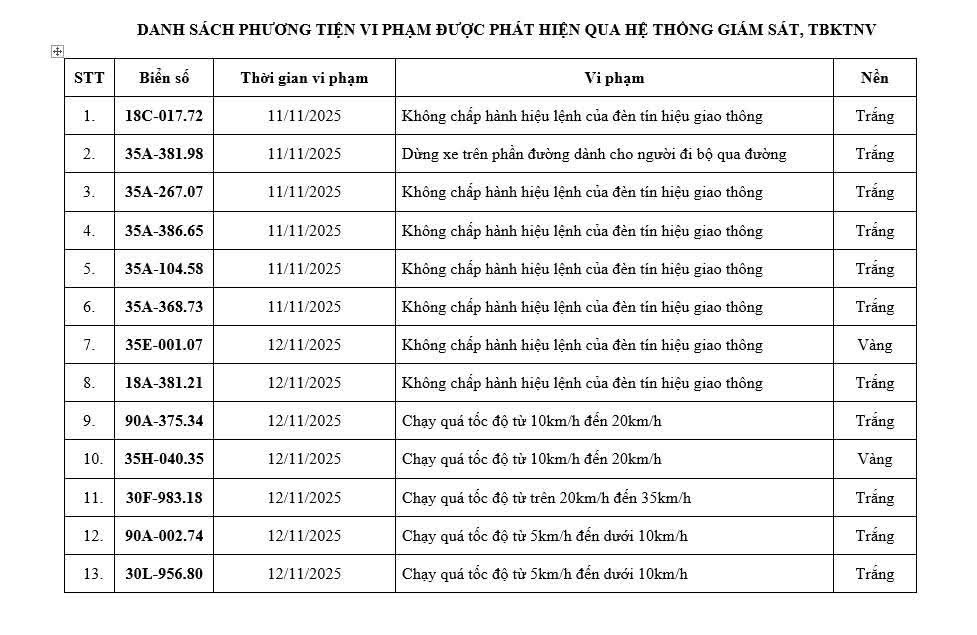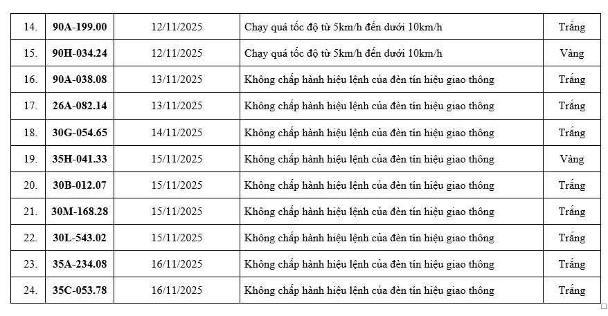 Danh sách các phương tiện dính “phạt nguội” trên địa bàn tỉnh từ ngày 11/11 đến 16/11